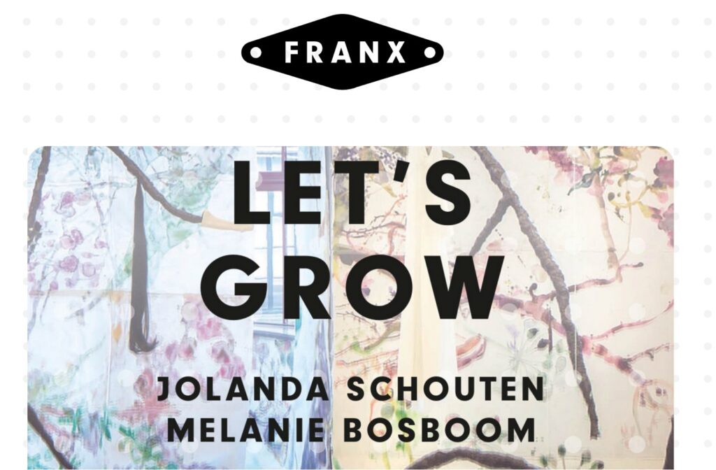 In de laboratoriumexpositie ‘Let’s Grow’ verkennen Jolanda Schouten en Melanie Bosboom de verschillende facetten van groei: groeien als mens, de verandering van het leven om ons heen en de helende werking van planten. Geïnspireerd door hun wisselwerking zijn de kunstenaars in de kunstgarage aan het werk, zodat de expositie zelf ook letterlijk blijft groeien. Het doel is om in alle kwetsbaarheid te kunnen groeien en te helen in relatie tot de openbare tentoonstelling, de medemaker en de medemens. De kunstenaars verdiepen zo bovendien hun artistieke vriendschap.
